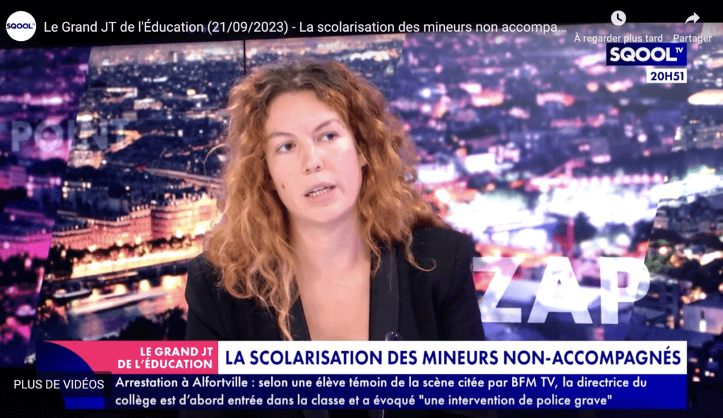 Morgane Magdelain, coordinatrice de Droit à l’école, et Corentin Bailleul, responsable plaidoyer à Unicef France, ont dénoncé les difficultés d’accès à la scolarisation des mineur.e.s non accompagné.e.s dans le grand JT de l’éducation sur Sqool TV. Regardez l’émission complète ici. Lire le rapport de l’Unicef ici.